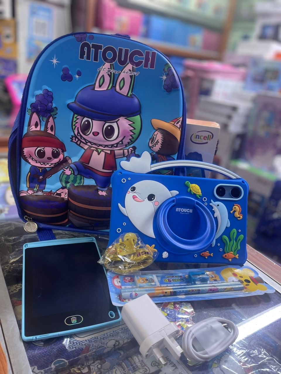 Une tablette 8 pouces multi couleur + un sac à dos + écritoire. Parfaite pour divertir, apprendre, regarder des vidéos, jouer ou communiquer.